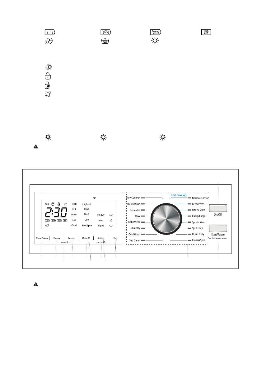 b. Clock: Indicates time left until the end of wash/dry cycle.