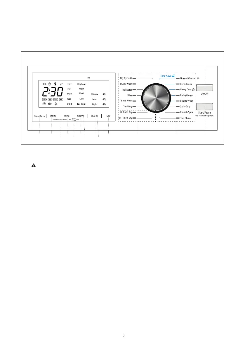 ciclo. Para añadir una prenda una vez comenzado el ciclo de lavado, presione este botón durante 3 segundos