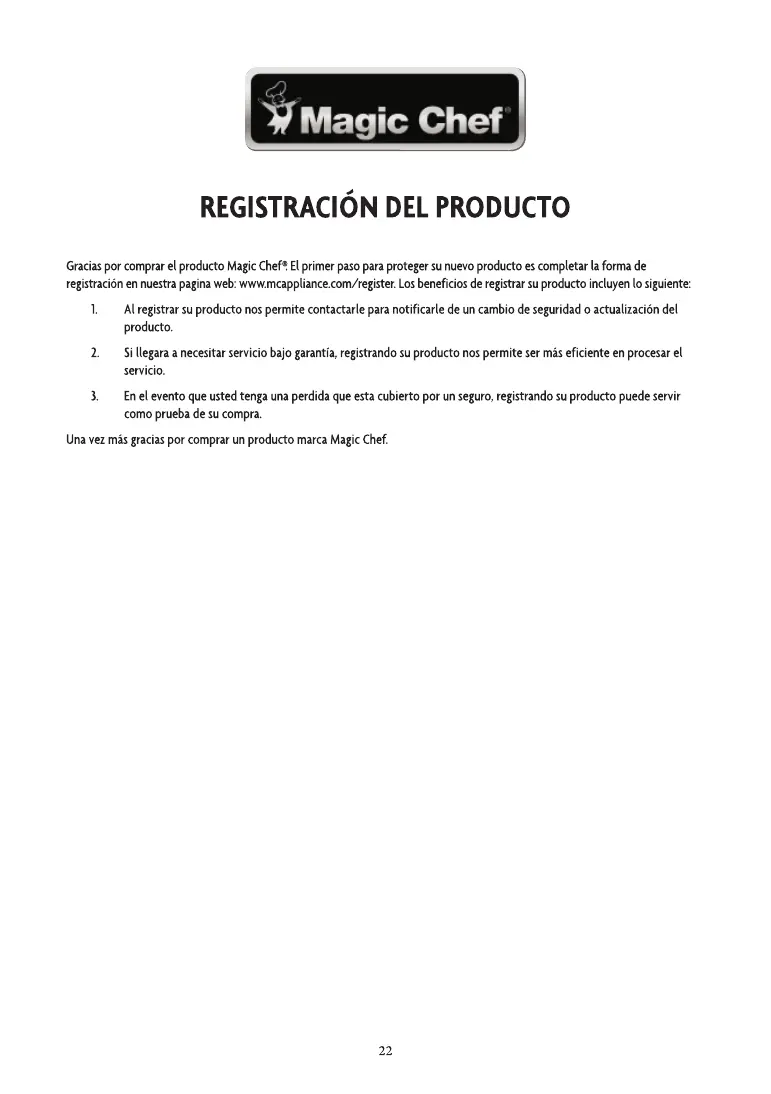 registraciön ennuestrapaginaweb:www.mcappliance.com/register.Losbeneficiosderegistrarsuproductoincluyen10siguiente: