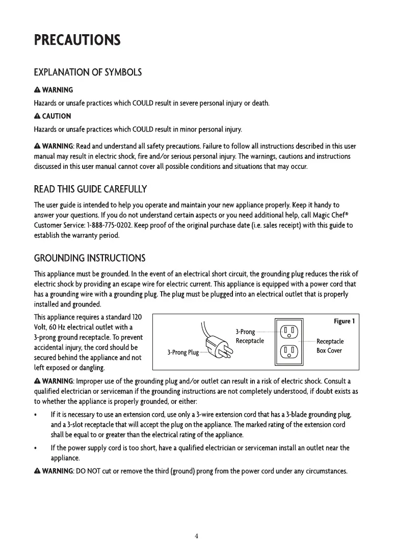electricshockbyprovidinganescapewirefor electriccurrent.Thisapplianceisequippedwith apowercordthat