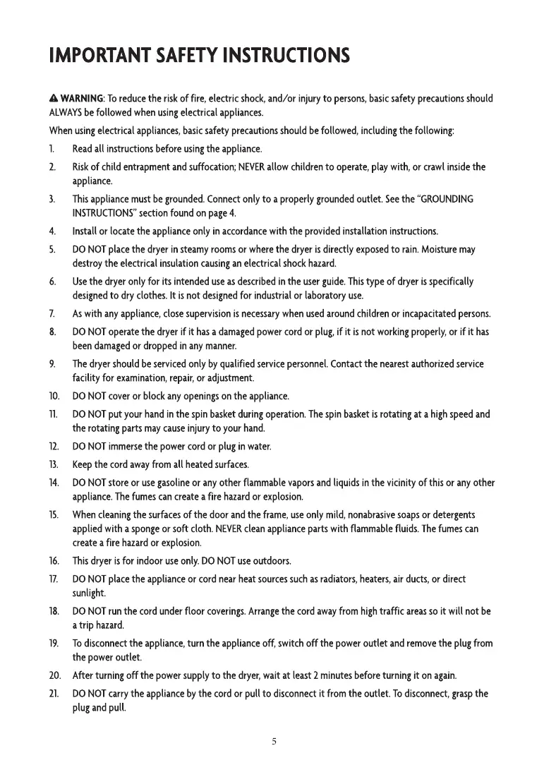 Thisdryer isfor indoor useonly.DO NOTuseoutdoors.