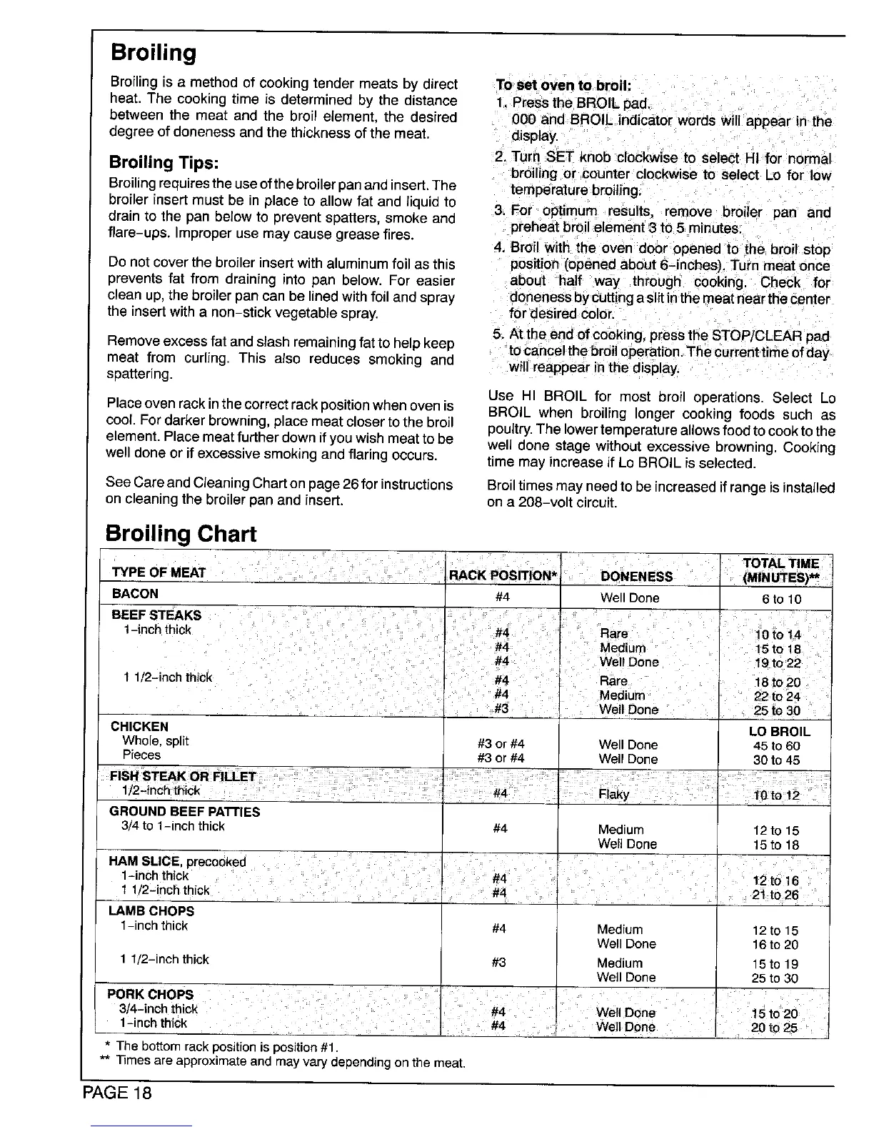 See Care and Cleaning Chart on page 26 for instructions Broil times may need to be increased if range is installed