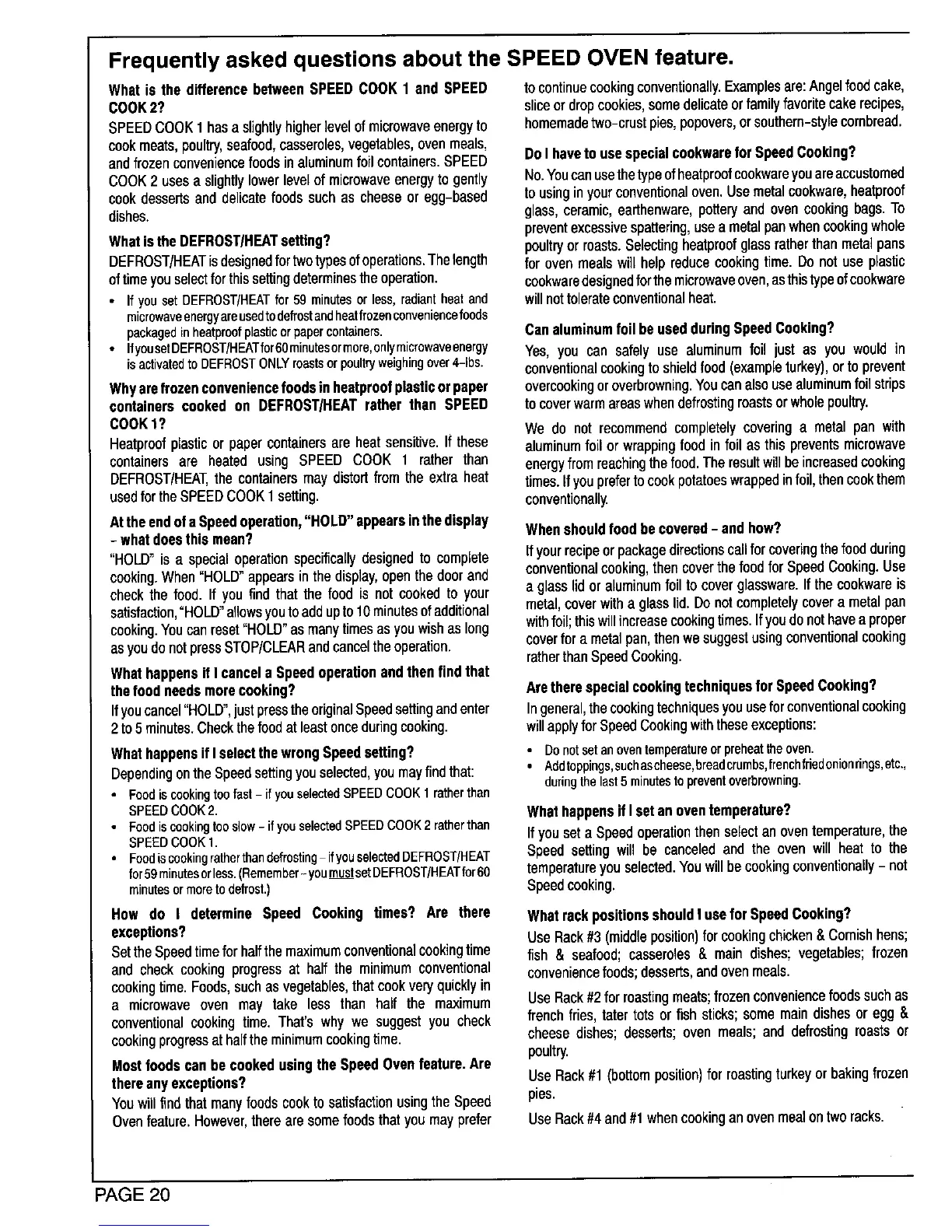 andfrozenconveniencefoodsinaluminumfoilcontainers.SPEED DoI havetousespecialcookwareforSpeedCooking?