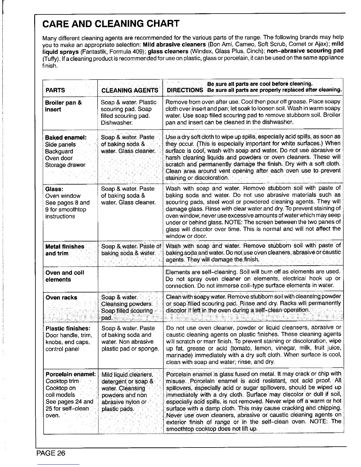 you to make an appropriate selection: Mild abrasive cleaners (Ben Ami, Cameo, Soft Scrub, Comet or Ajax); mild