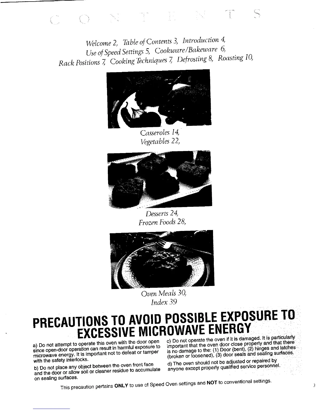 This precaution pertains ONLY to use of Speed Oven settings and NOT to conventional settings,