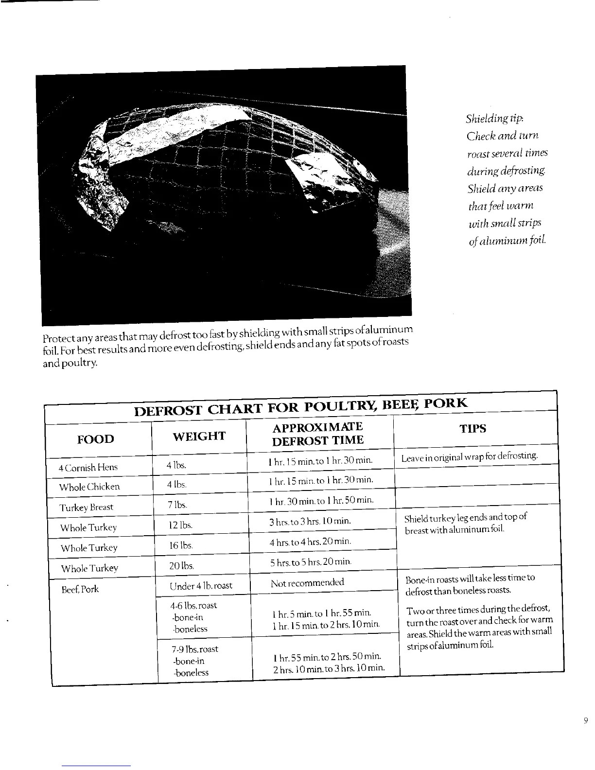 foil.For best results and more even defrosting, shield ends and any fat spots of roasts