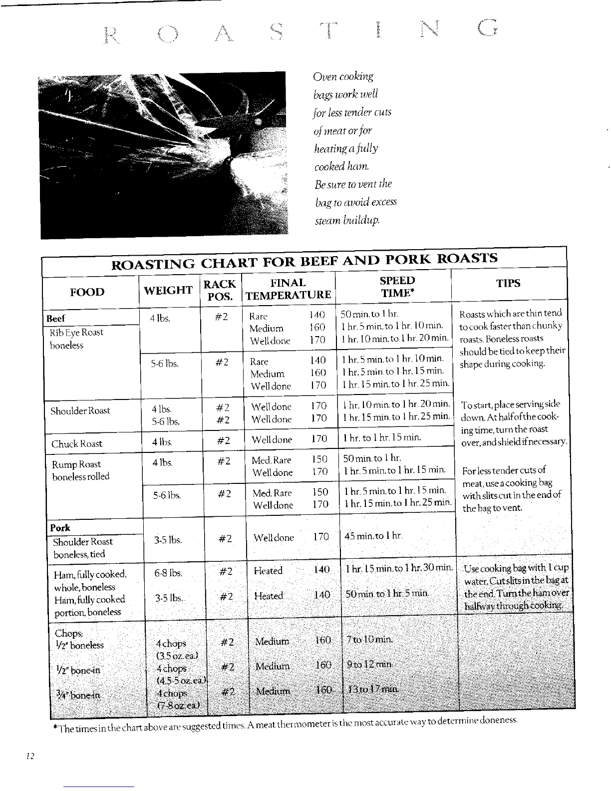 boneless Welldone 170 Ihr. lOmin.to I hr.2Omin. roasts.Bonelessroasts