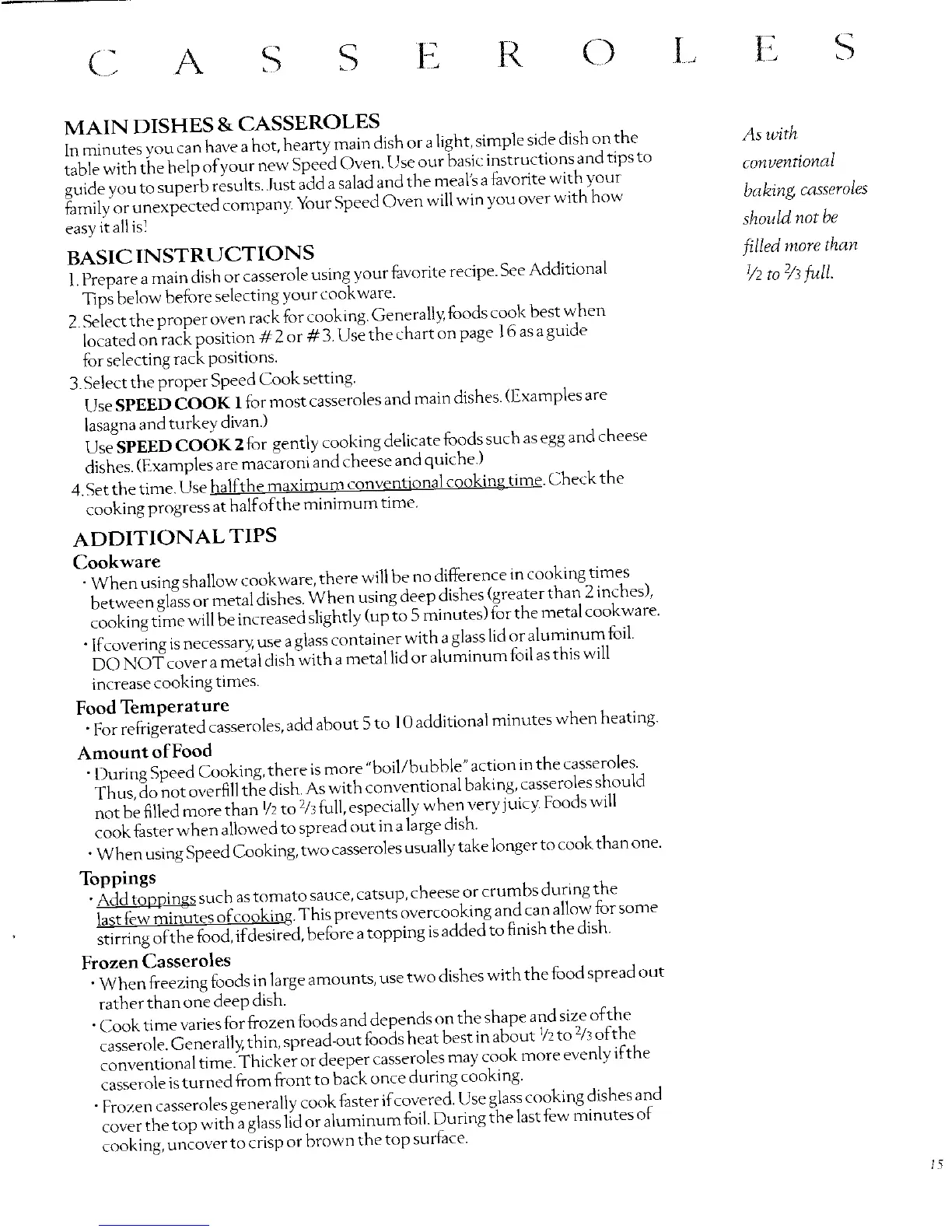 Use SPEED COOK 1for most casseroles and main dishes. (Examples are