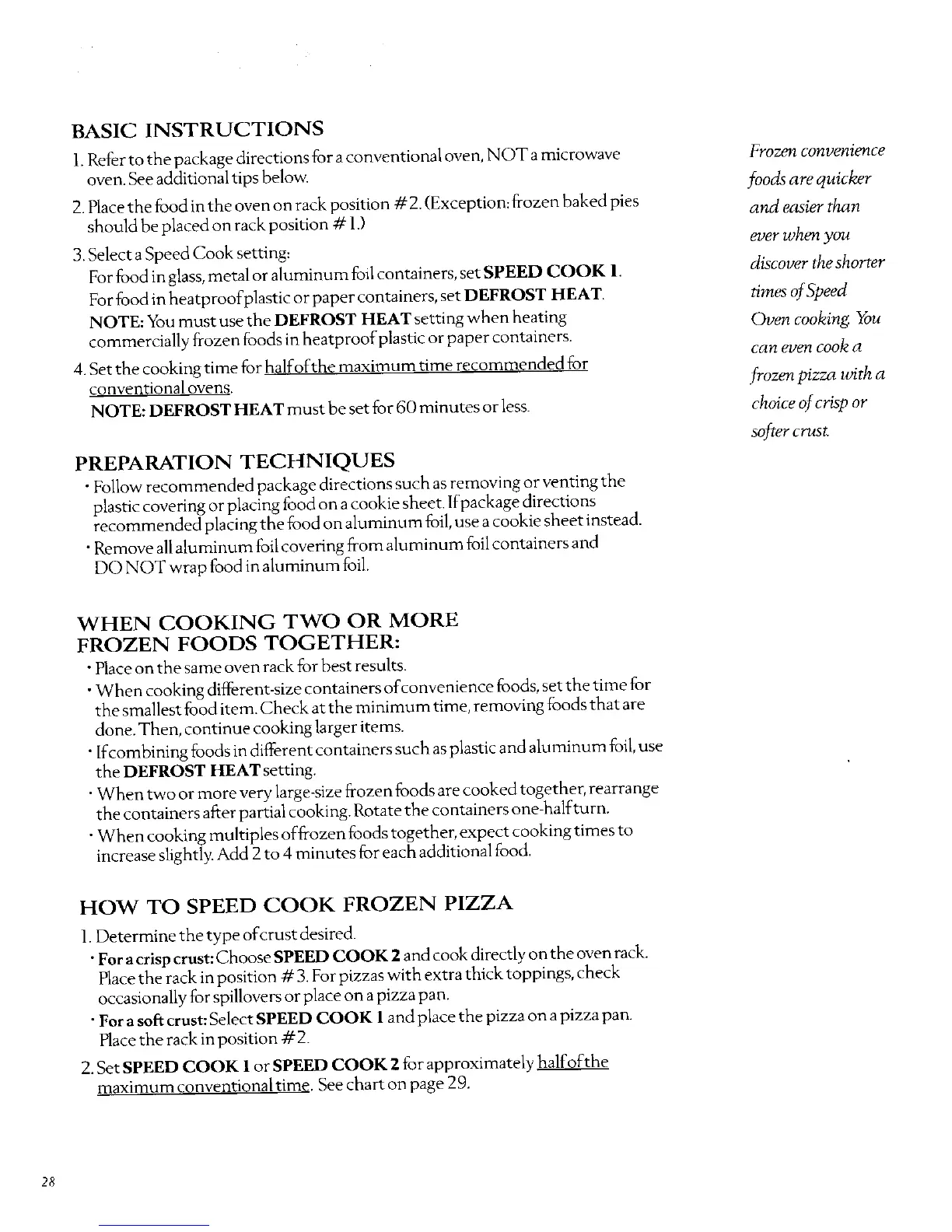 oven. See additional tips below, foods are quicker