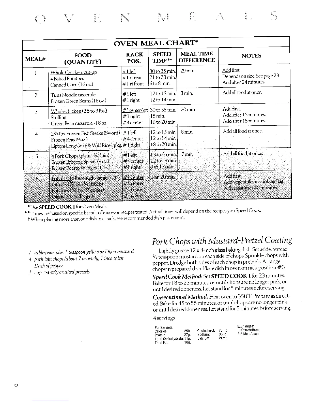 *Use SPEED COOK I for Oven Meals.
