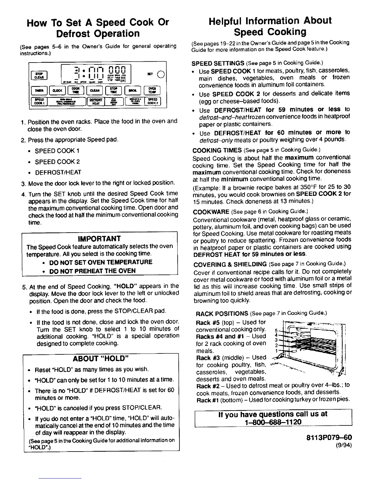 • There is no "HOLD" if DEFROST/HEAT is set for 60 Rack #2 - Used to defrost meat or poultry over 4-1bs.;to