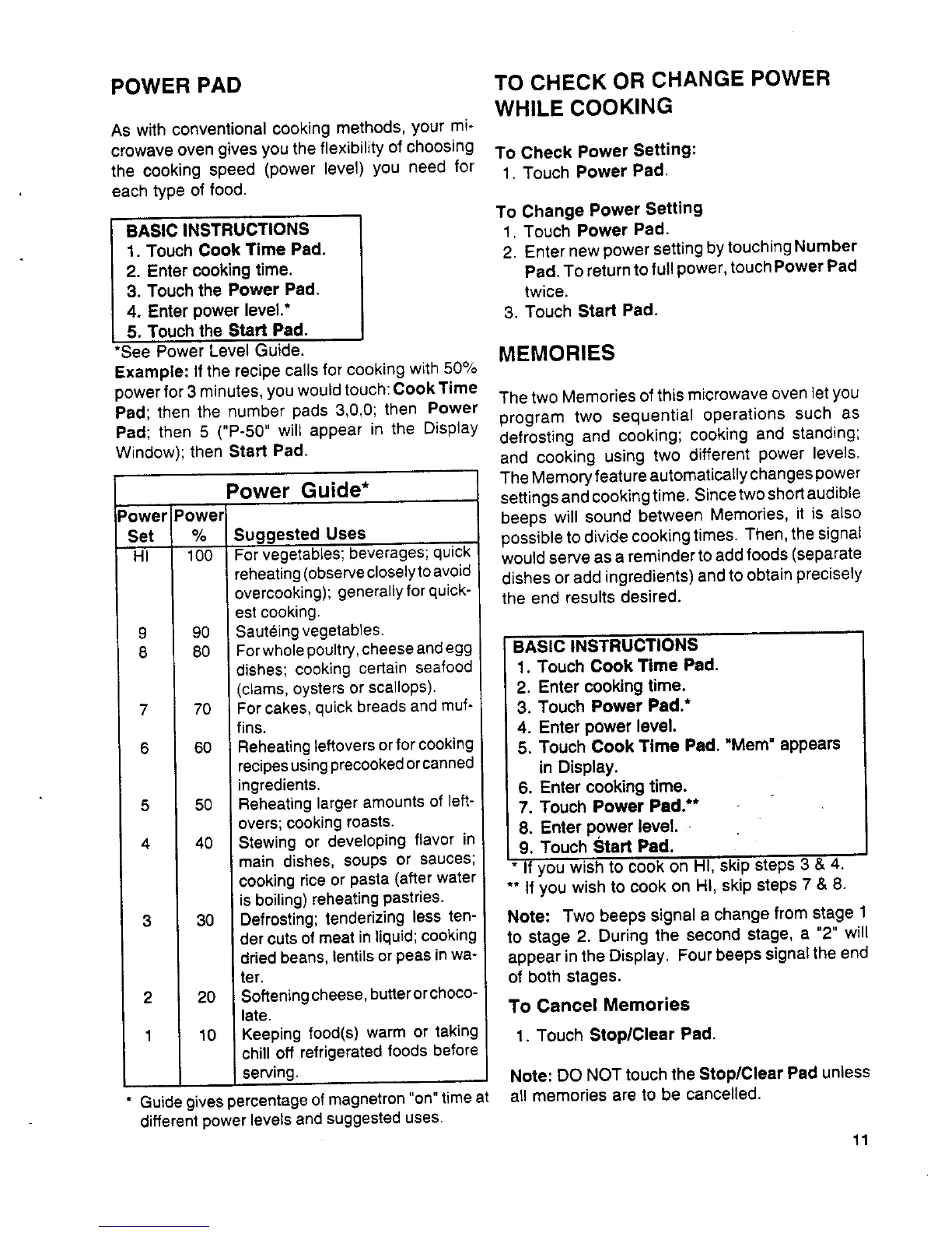 1. Touch Cook Time Pad. 2. Enter new power setting by touching Number