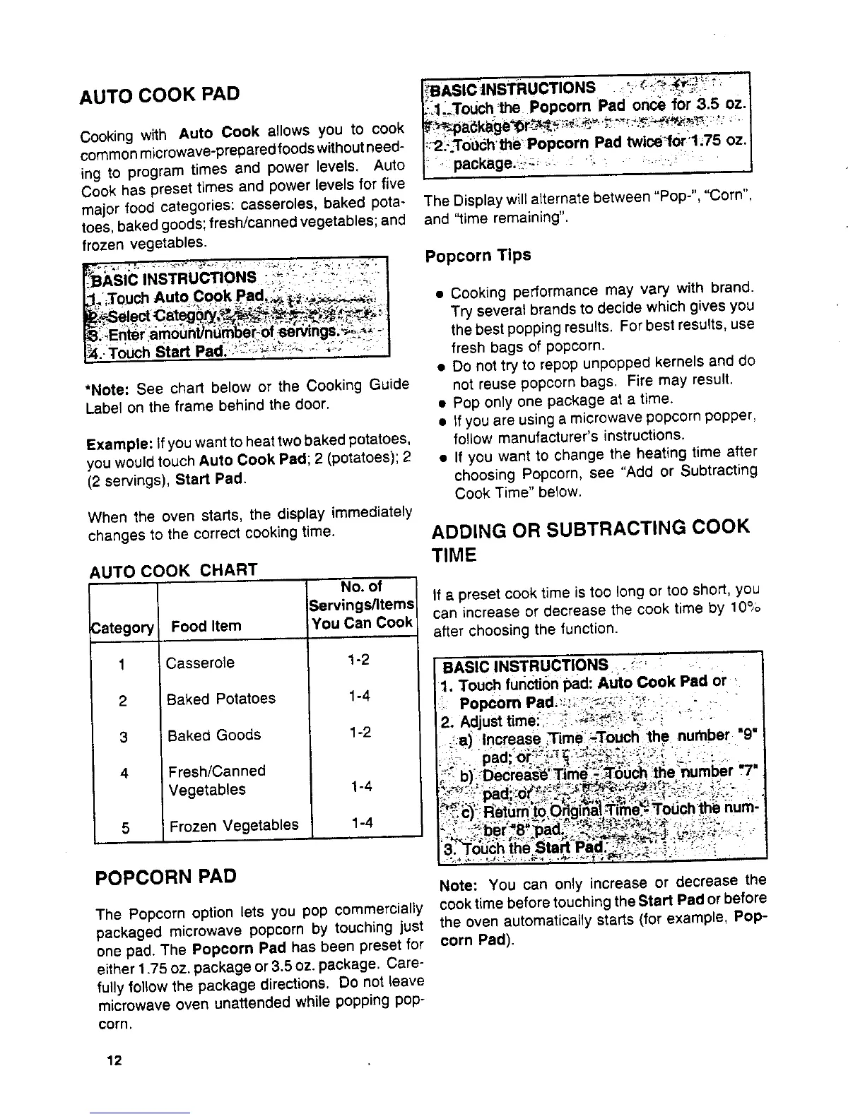 AUTO COOK PAD _3BASICINSTRUCTIONS __:_i": :' I