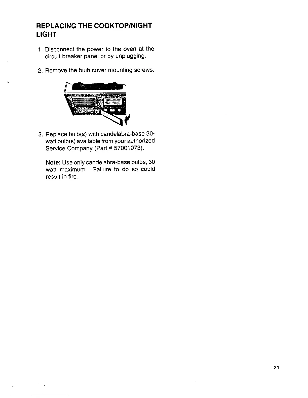 Note: Use onlycandelabra-base bulbs, 30