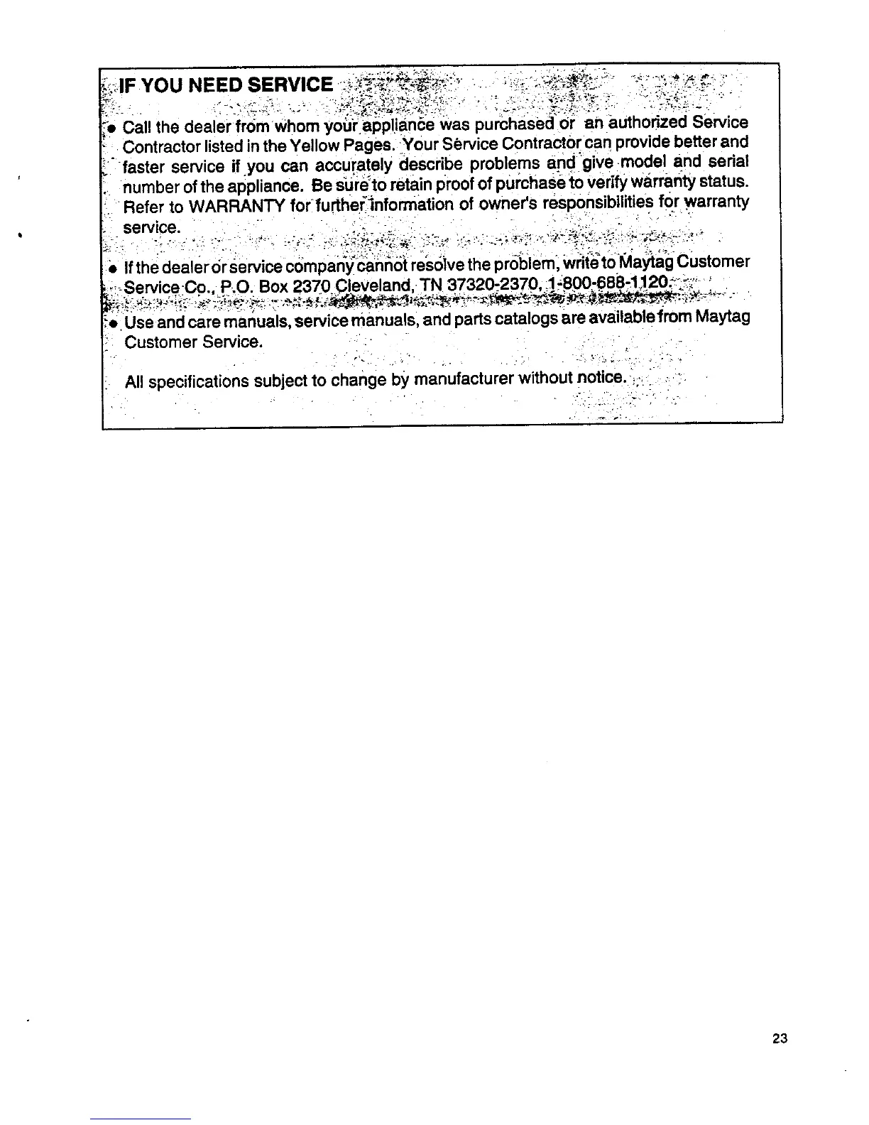 Useandcaremanuals,servicemanuals,andpartscatalogsare availablefromMaytag