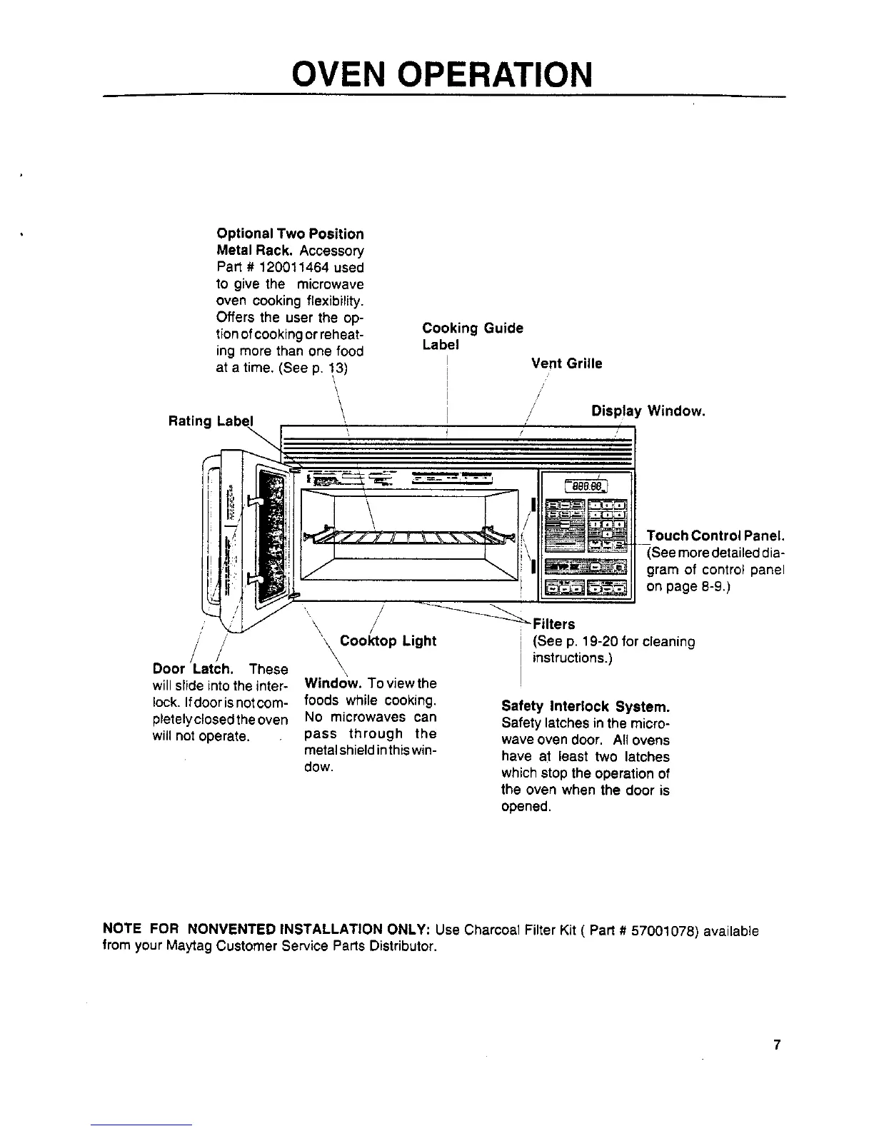 NOTE FOR NONVENTED INSTALLATION ONLY: Use Charcoal Filter Kit ( Part # 57001078) available