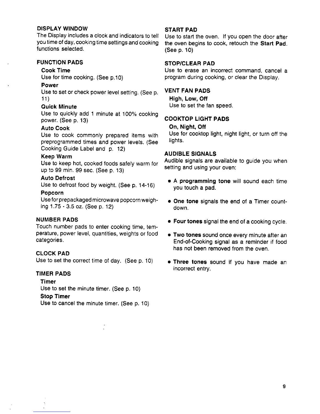 NUMBER PADS • Four tones signal the end of a cooking cycle.