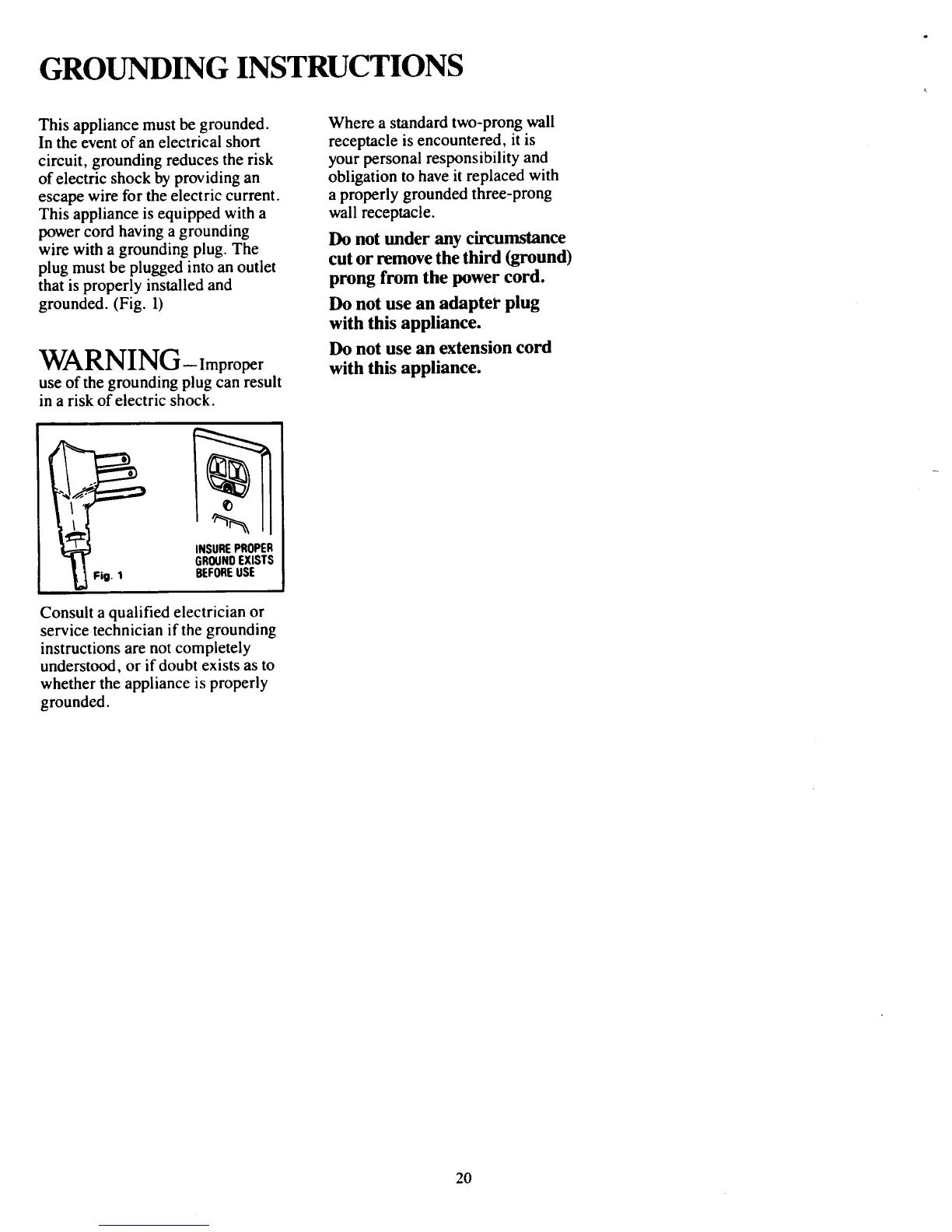 grounded. (Fig. l) Do not use an adapter plug