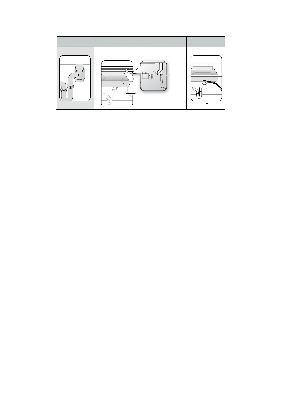 dessus de la base du meuble de l'évier pour empêcher le refoulement (voir la figure E ci-dessous).