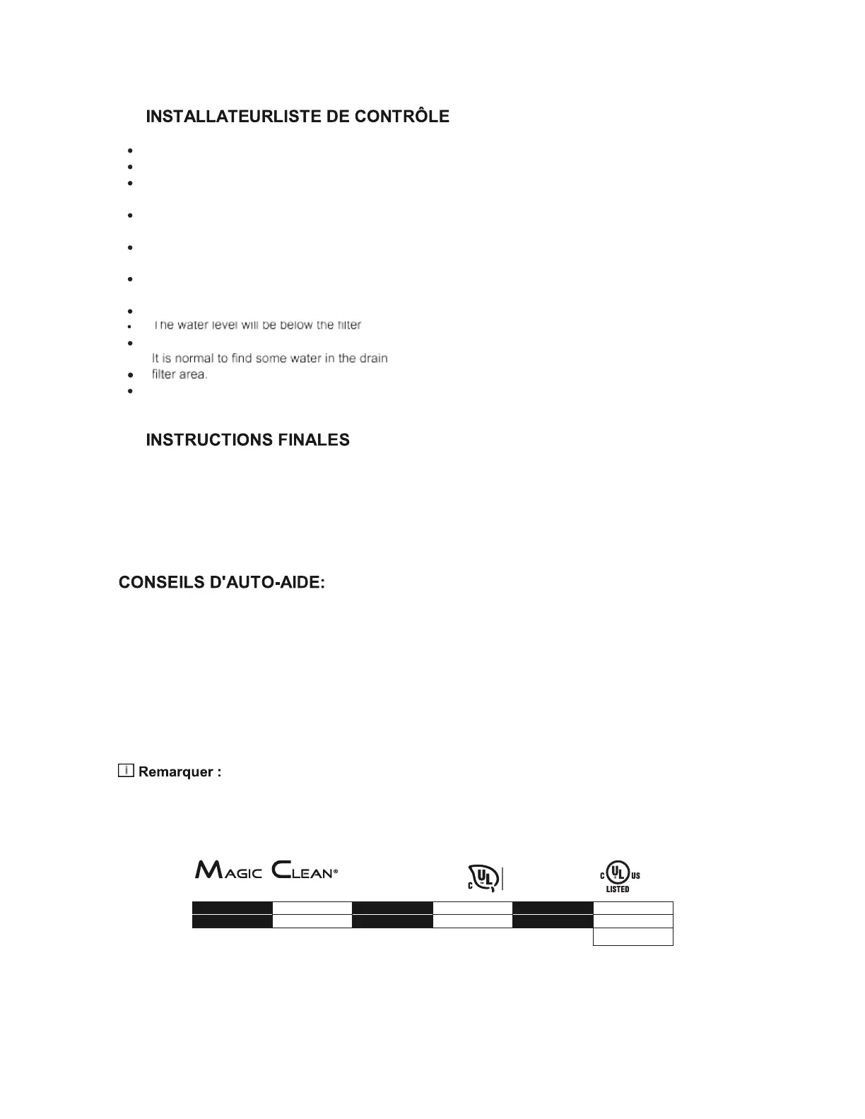 Votre installateur doit avoir effectué et vérifié les éléments suivants:
