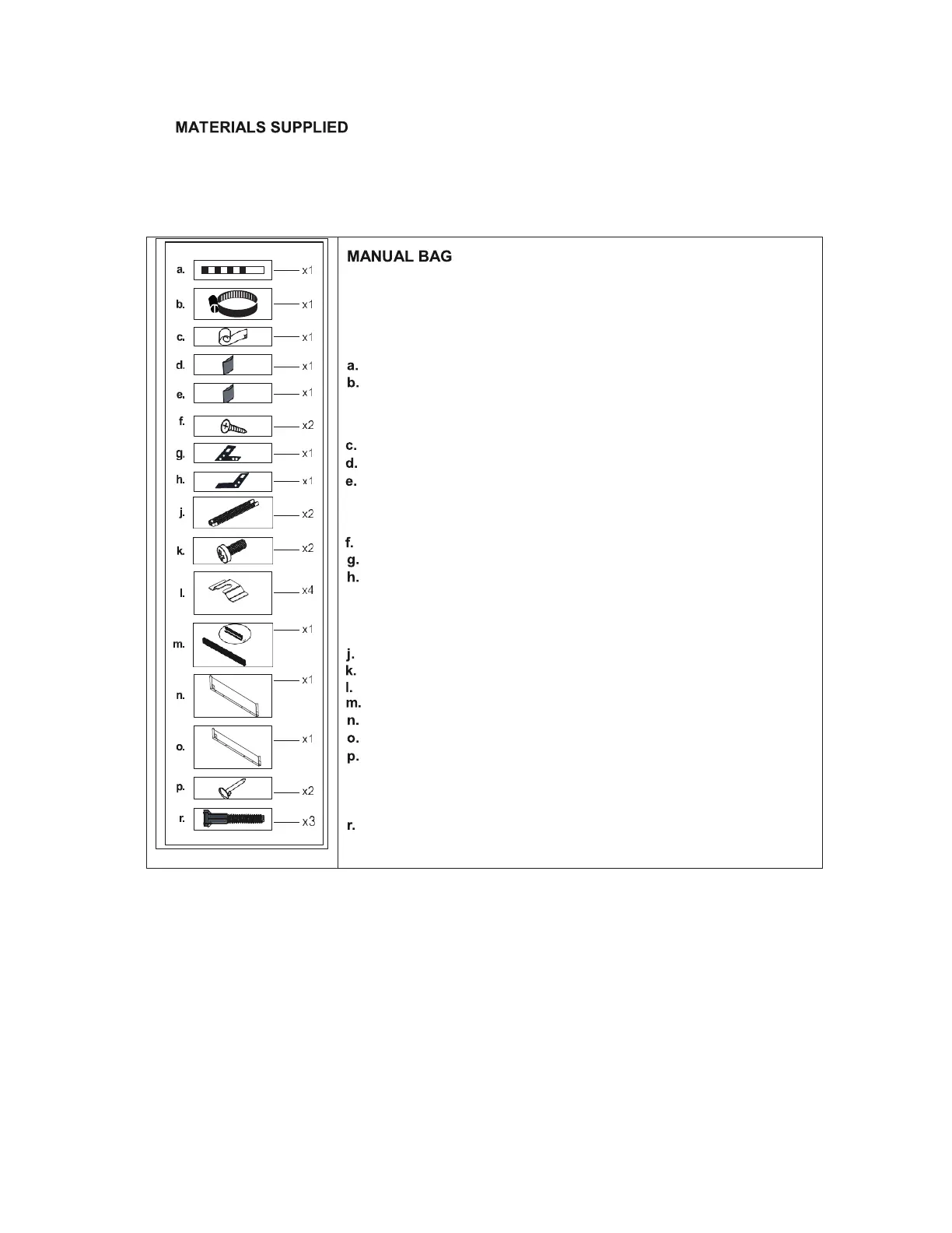 following parts are contained in the plastic bags.