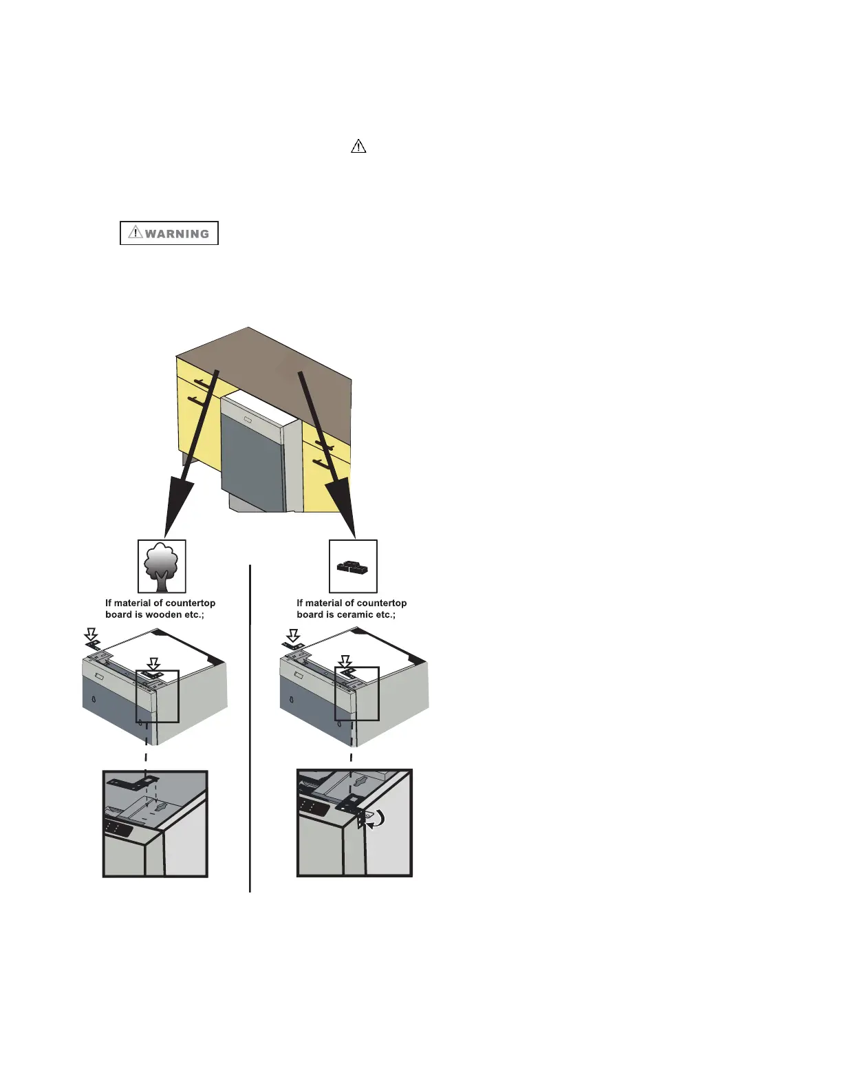 is installed in the cabinetry. Use of any parts other than mounting brackets may result in damage to