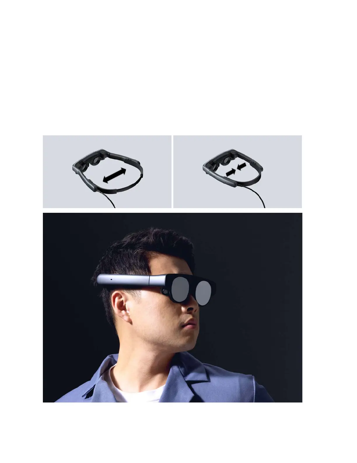 The Headset adjusts to the width of your head by gently stretching the temples of
