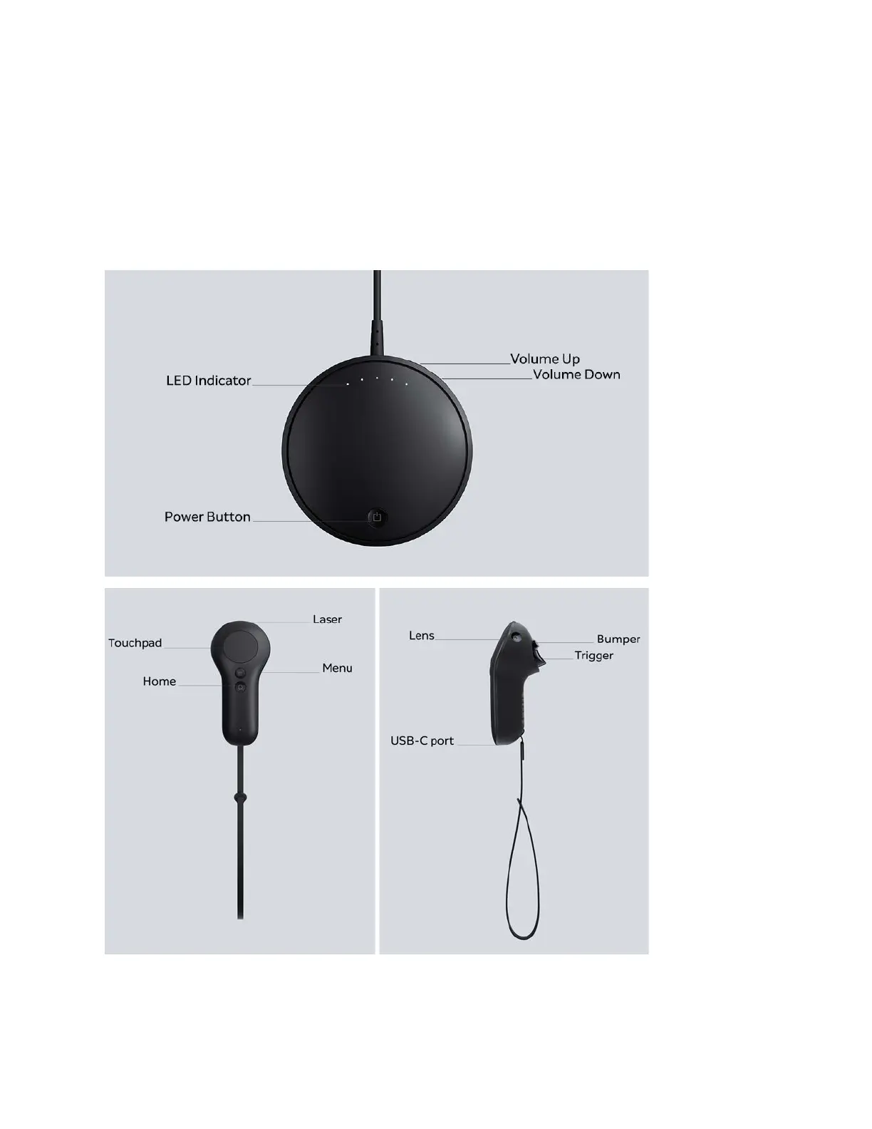 Identify the buttons and controls on the Magic Leap 2 Controller and Compute Pack