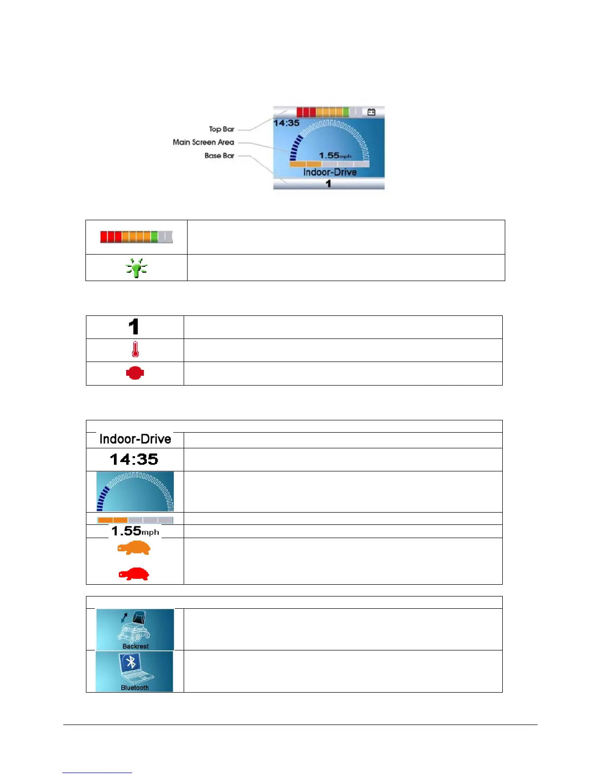Speed Display: This gives a proportional display of the wheelchairs speed.