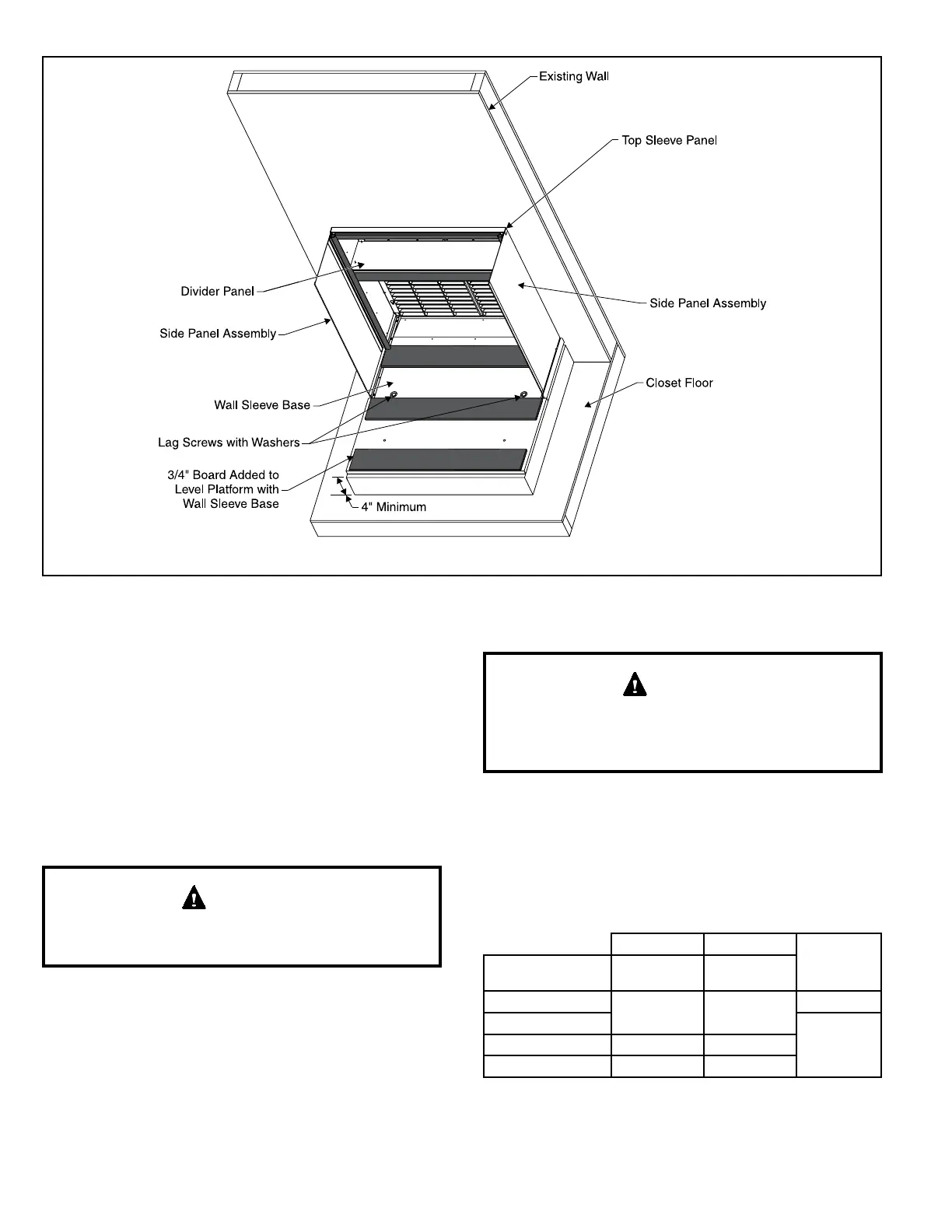 NOTE: Platform must be constructed so that it is level with sill plate of wall opening.