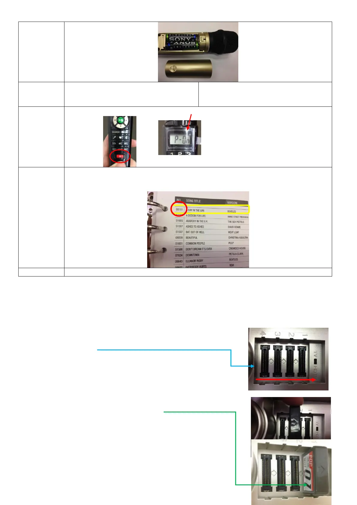the “Song Title”) and press the GREEN “Play/Stop” button in the centre of the microphone.