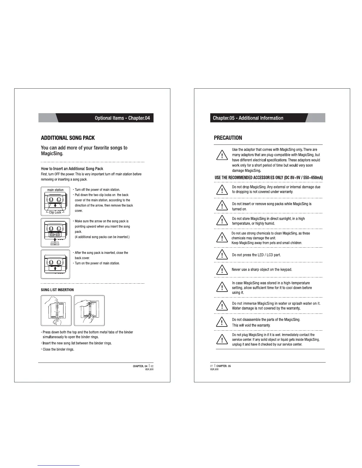 Magic Sing ET18K - Chapter.05 - Additional Information; PRECAUTIONS AND SAFETY; RECOMMENDED ACCESSORIES