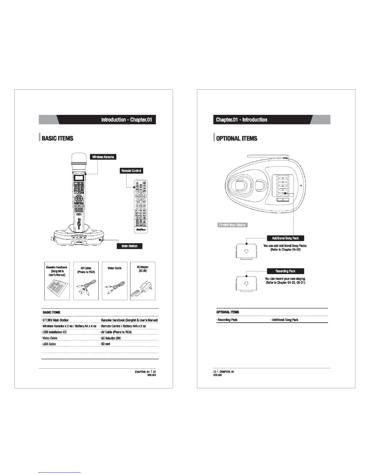 Magic Sing ET19KV - Basic Items; Optional Items