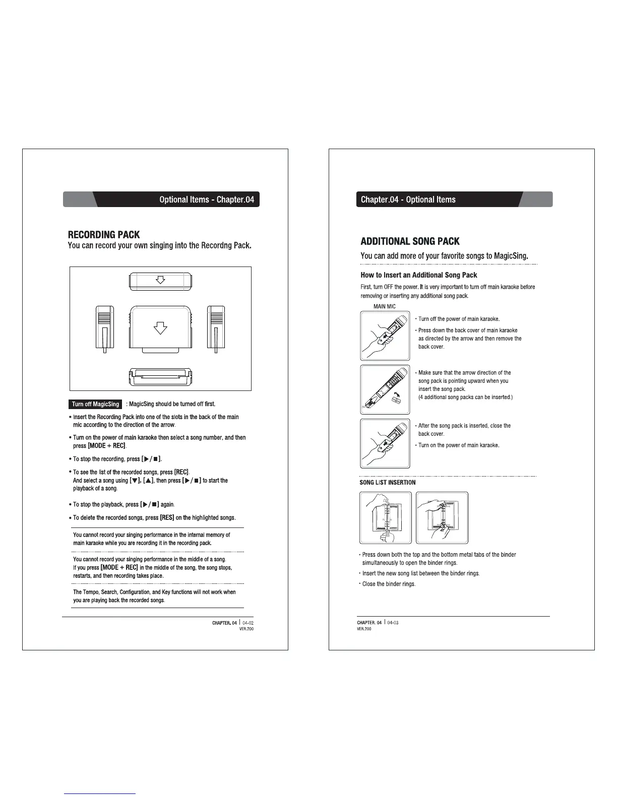 Magic Sing ET9K - Chapter 04: Optional Items; Wireless Duet Karaoke; Recording Pack; Additional Song Pack