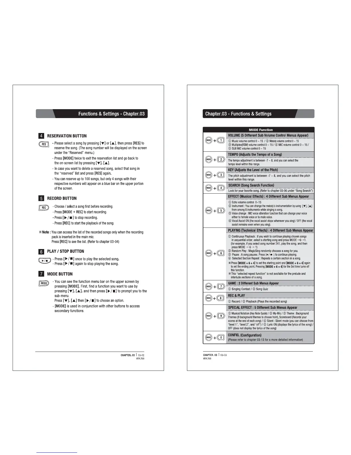 Magic Sing ET9K - Chapter 03: Functions & Settings; ET9 K Main Karaoke Key Buttons; Mode Functions Overview