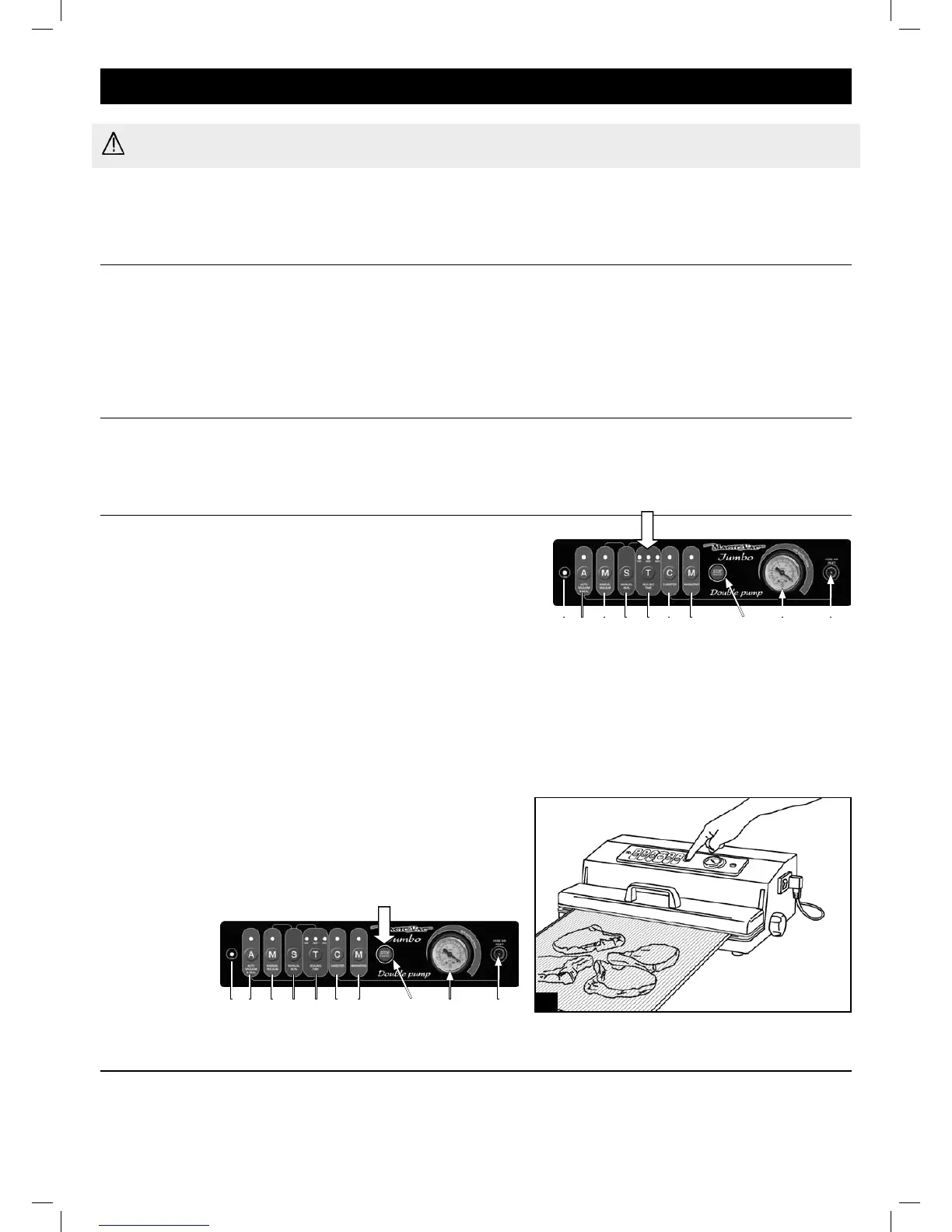 vor dem Gerät frei von Hindernissen sein soll und genügend räumig, damit die Beutel mit den zu vakuumierenden