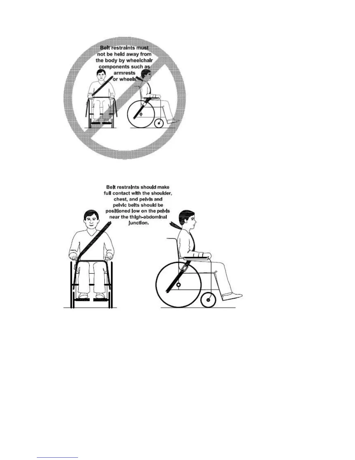 Figure 8 - Illustration of proper routing an positioning of belt restraints on the wheelchair occupant