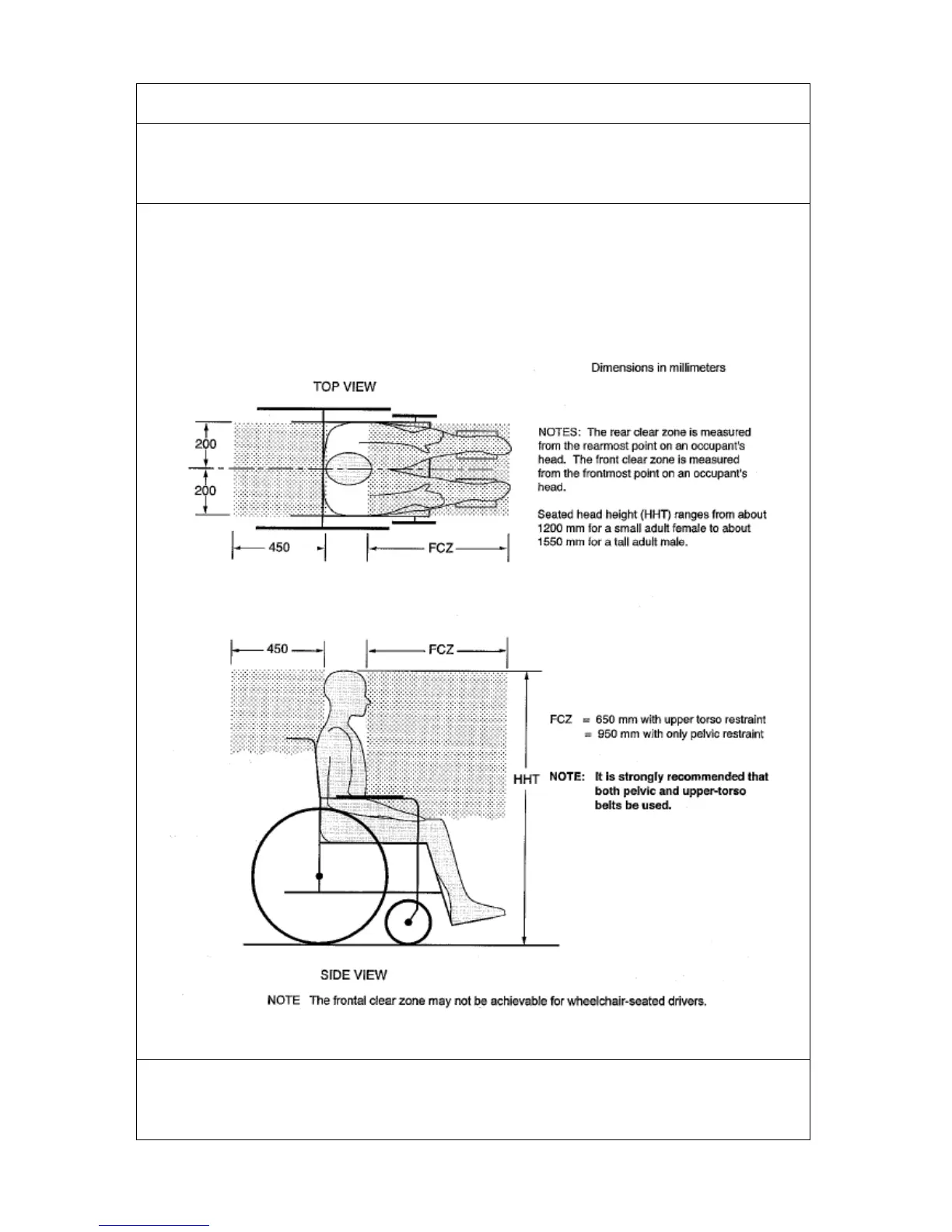 The forward clear space zone (FCZ) needs to be larger when a shoulder belt restraint is not