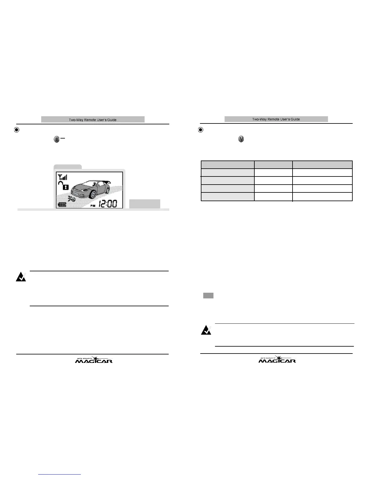 If button I V is pressed for 0.5 sec., the remote and vehicle will respond with
