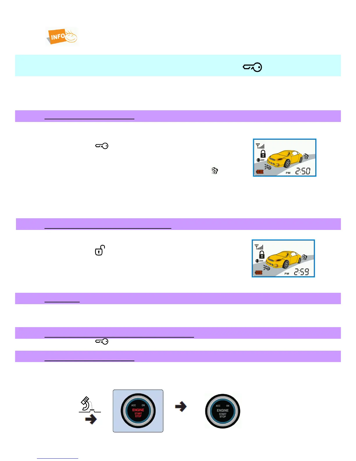 Remote engine start/stop. If the car has a diesel engine, alarm will wait for the preset time (3 /