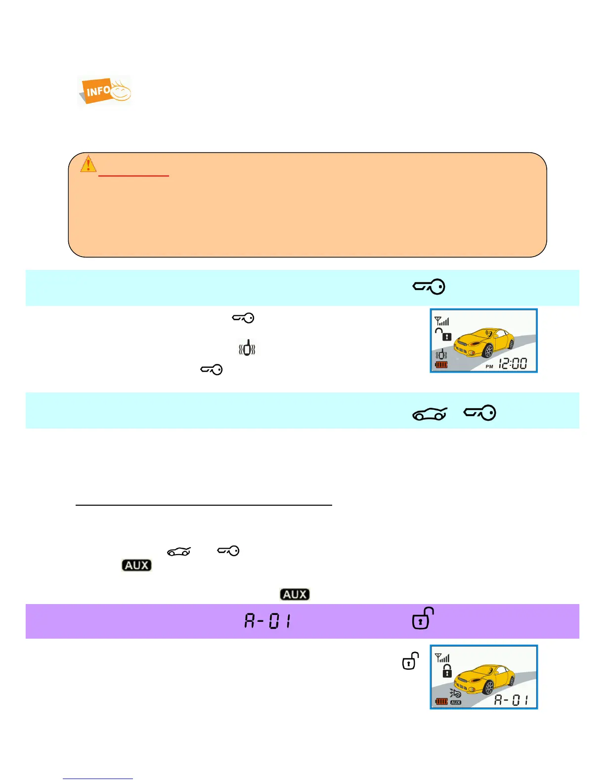 By outputs AUX 1 and AUX 2 you can operate any additional equipment in your car such as:
