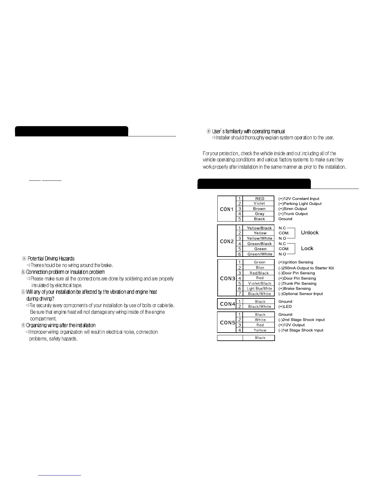 1-5. Vehicle check-up prior to and after the installation.