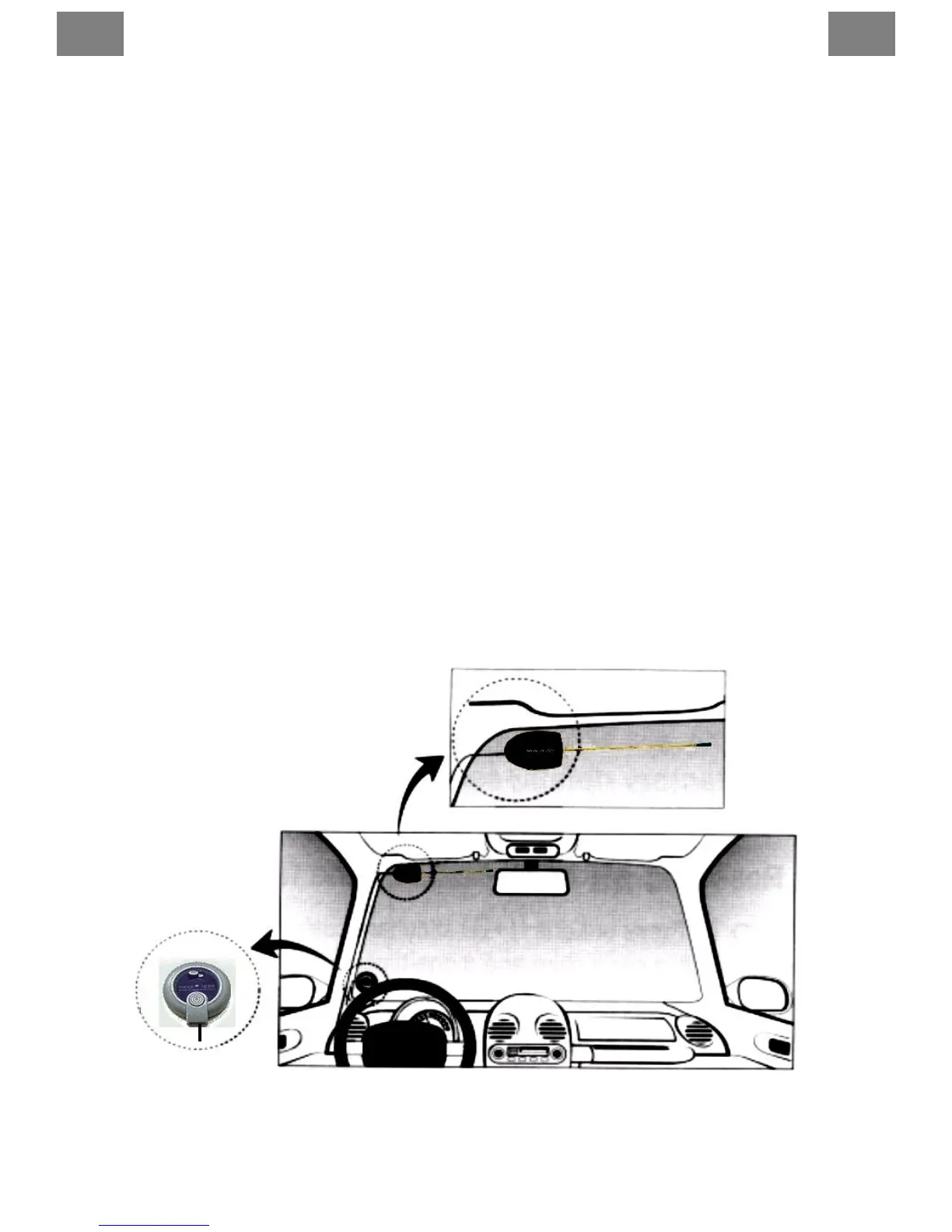 Anténu umiestnite za predné alebo zadné sklo tak, aby nebránila vo výhľade. Alternatívne