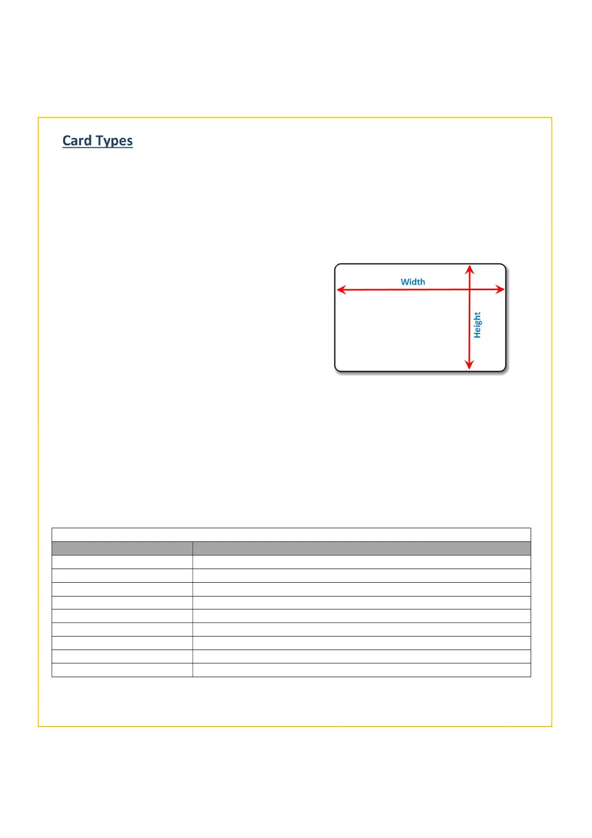 Generally, there are two standard sizes of card that can be used with the printer. These are as follows: