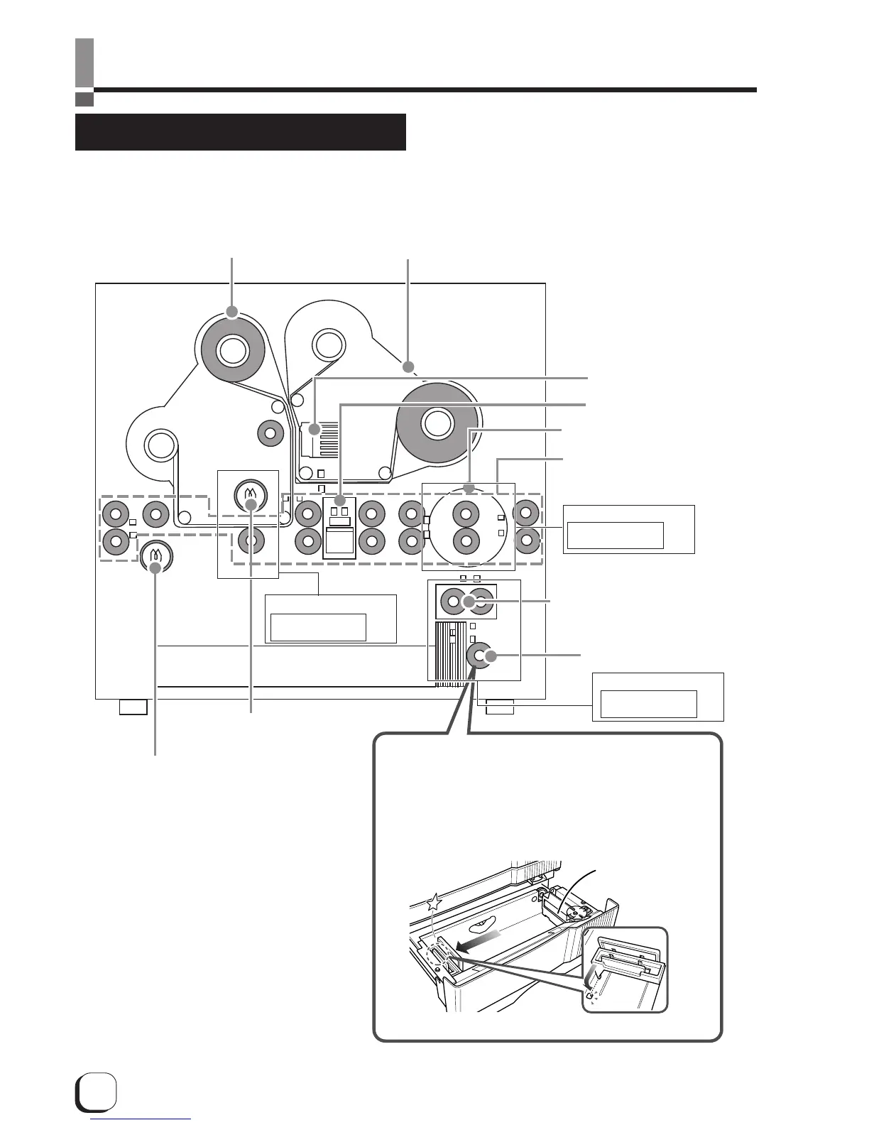 Below is a diagram of the layout of rollers inside the printer. Refer to this diagram in the event of card jams