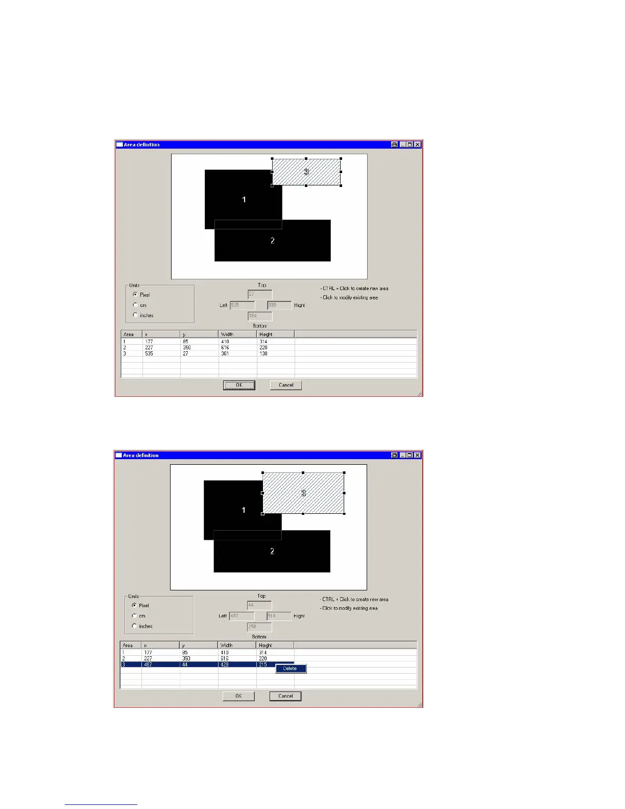 DEFINITION OF AREAS FOR USE OF PEEL OFF