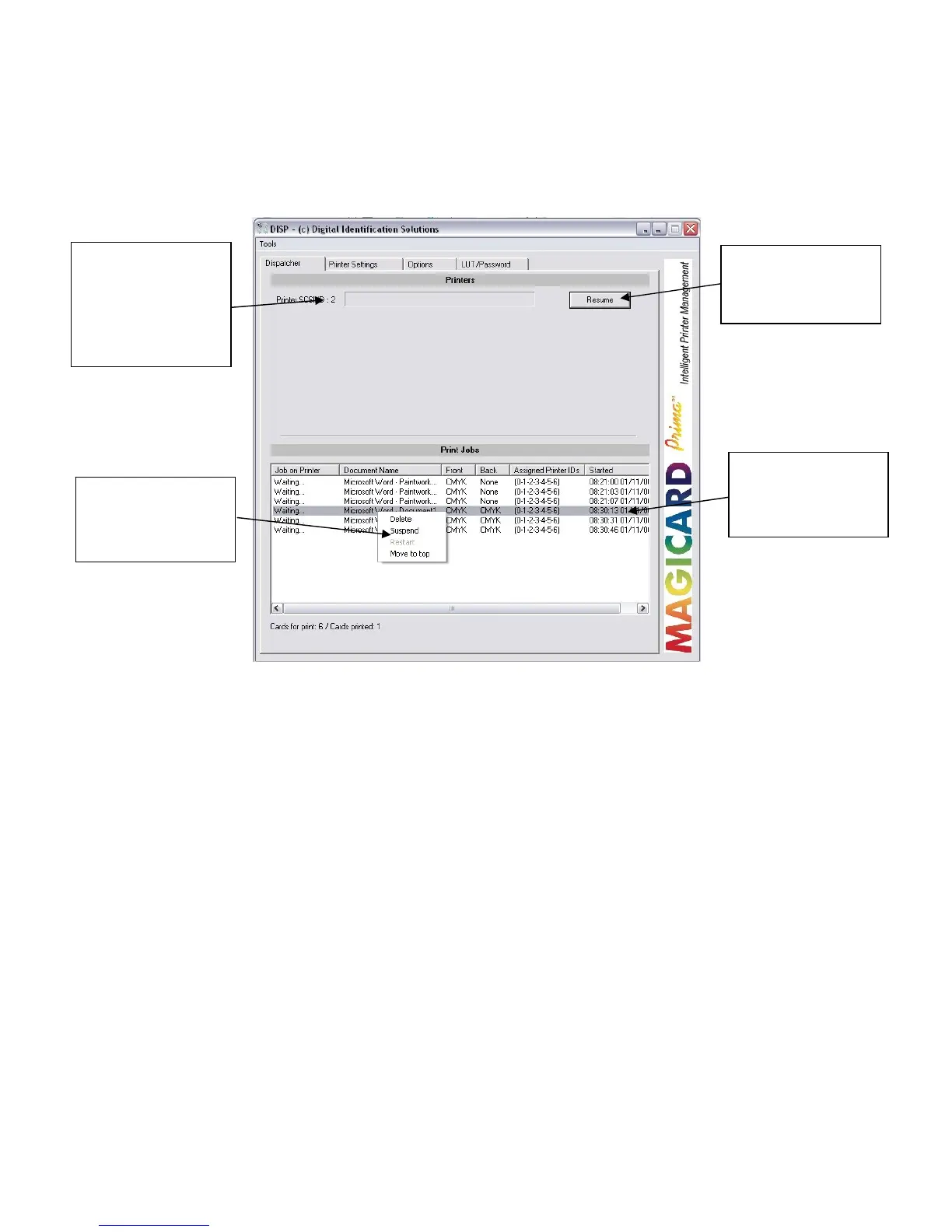 When a print job is started the “Dispatcher” screen shows the status of every printer,