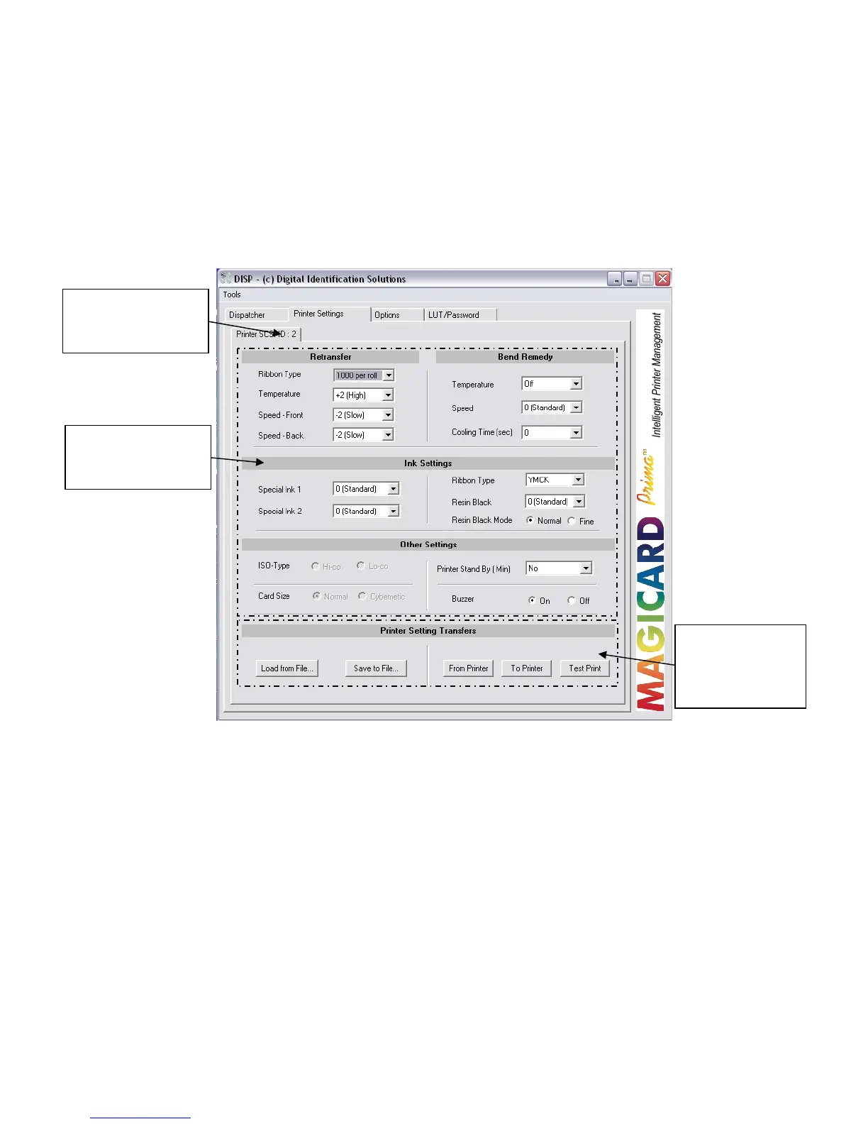The “Printer Settings” tab enables the user to set the printing parameters e.g. Speed,