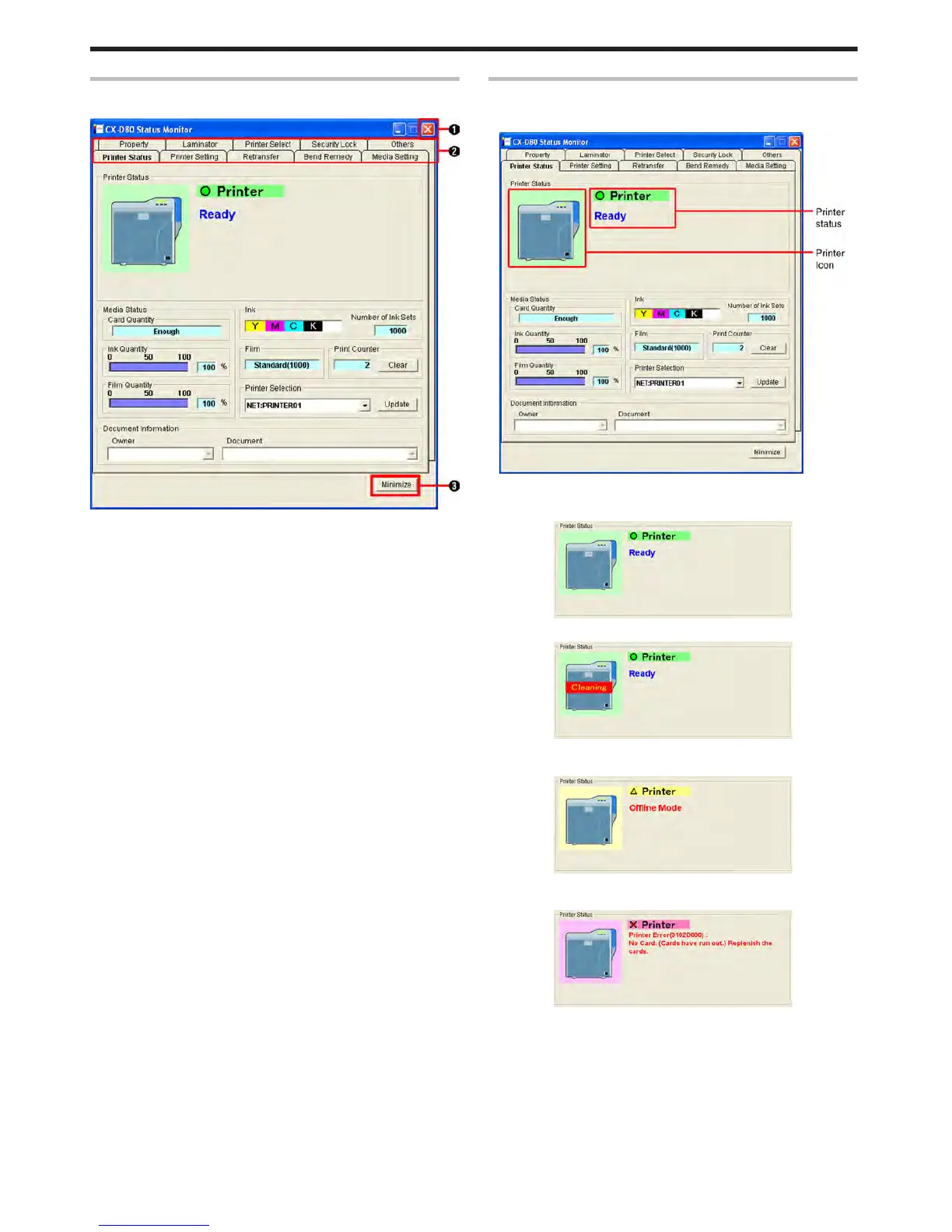 Minimizes the status monitor to an icon. The icon is displayed in the