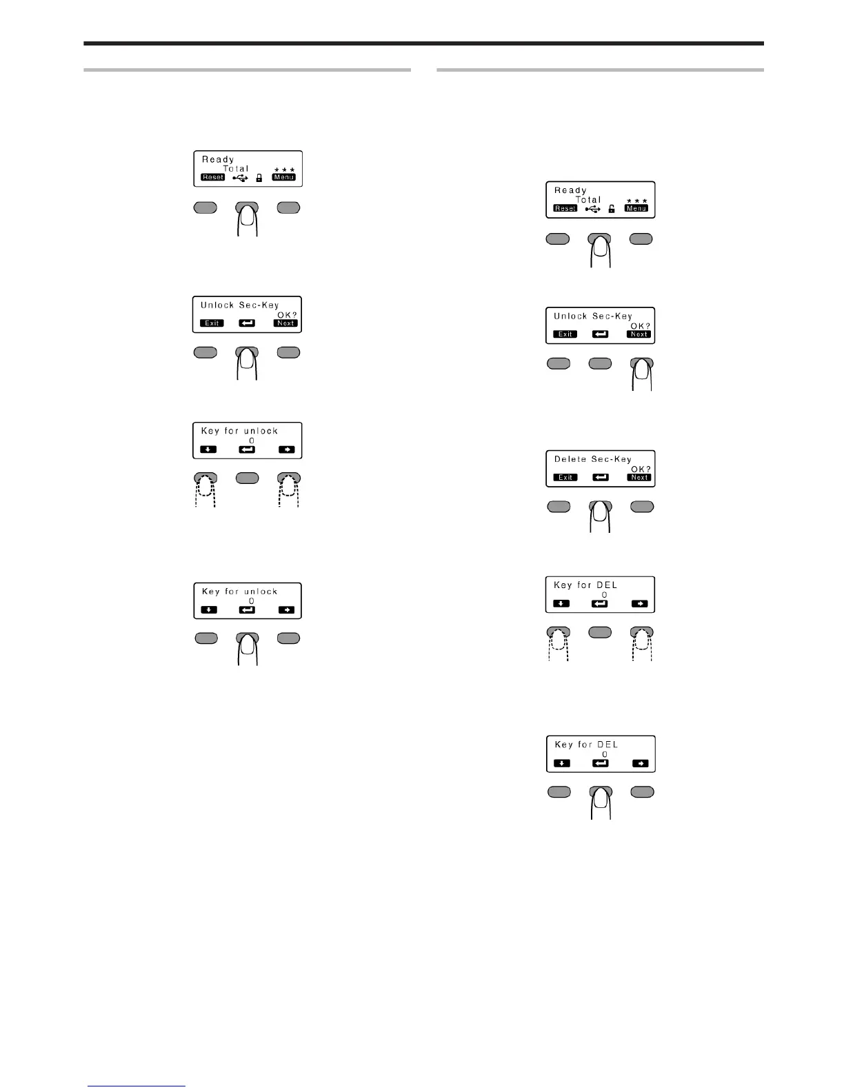 display returns to [Delete Sec-Key OK?]. Enter a number again.